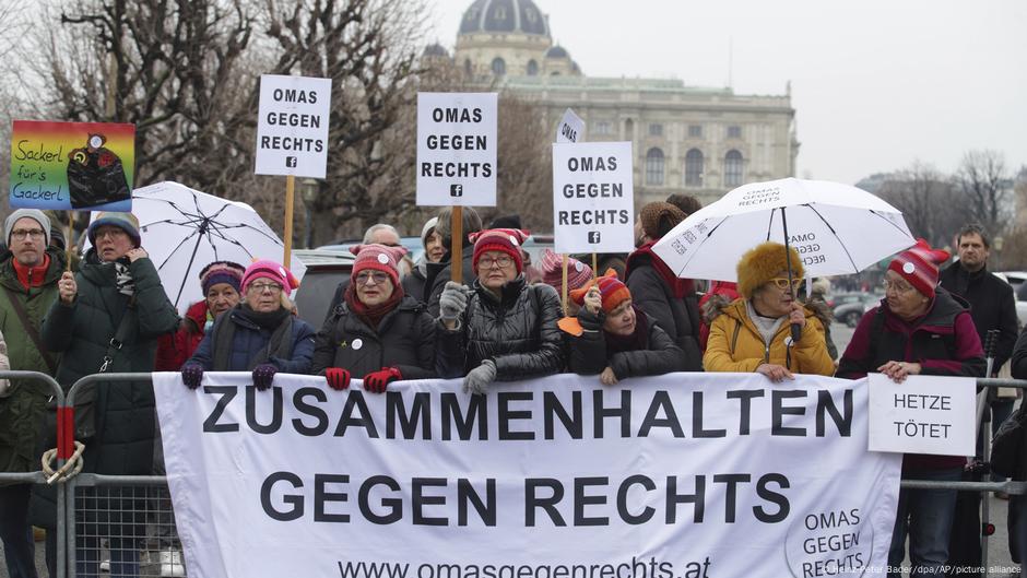 Arşiv – “Sağa karşı nineler” girişiminin üyeleri, “Sağa karşı dayanışma” ve “Kışkırtma öldürür” yazılı pankartlar taşıyorFotoğraf: Heinz-Peter Bader/dpa/AP/picture alliance