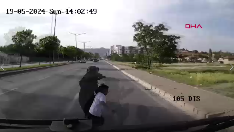 O esnada bineceğimiz otobüsün, otobüs durağına doğru geldiğini gördük. Bu esnada yoldaydık. Elimi havaya kaldırdım. Çünkü o otobüse binmemiz gerekiyordu. Otobüs, durağında durmadı. Frene basmadı, korna çaldı.