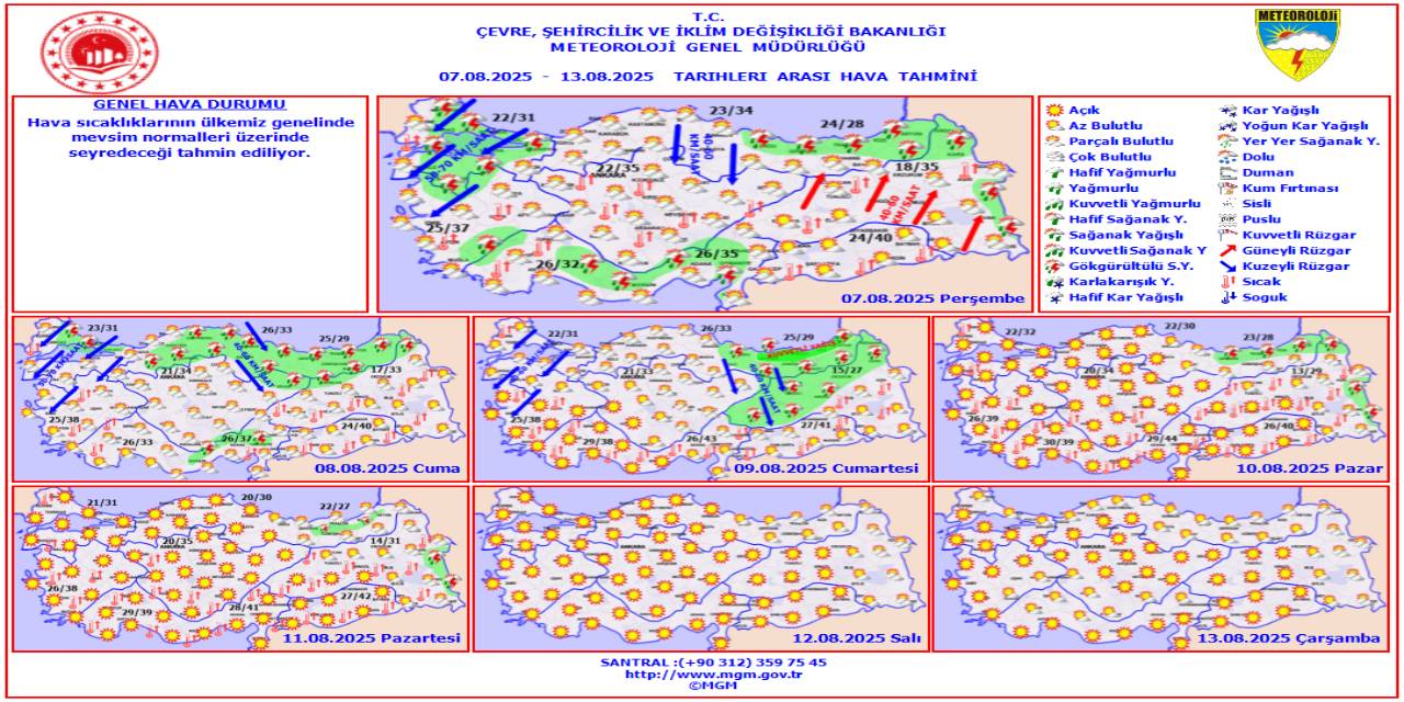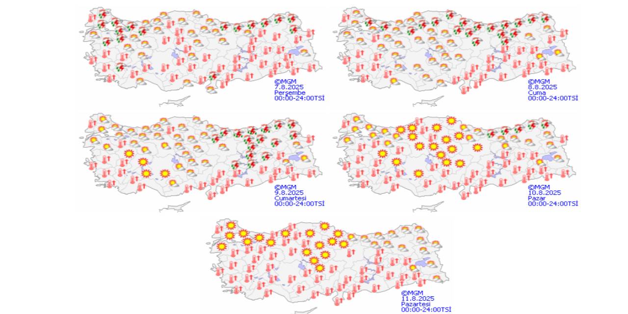 Meteoroloji Genel Müdürlüğü tarafından yapılan tahminlere göre: