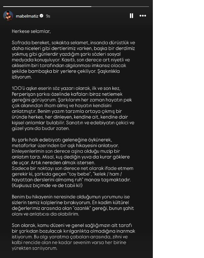 Aile ve Sosyal Hizmetler Bakanlığı, Mabel Matiz’in “Perperişan” şarkısına erişim engeli talebinde bulunmuştu.