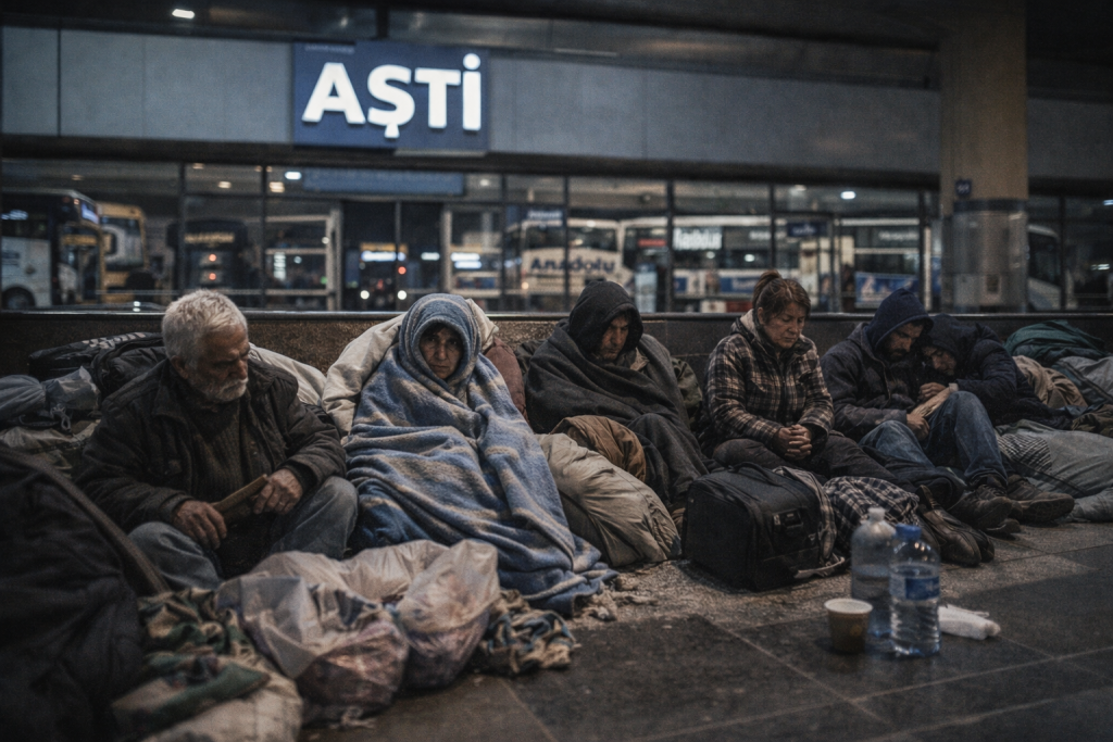 AŞTİ’nin soğuk banklarında, ışıkların hiç sönmediği bir terminalde insanlar barınma değil, hayatta kalma mücadelesi veriyor.