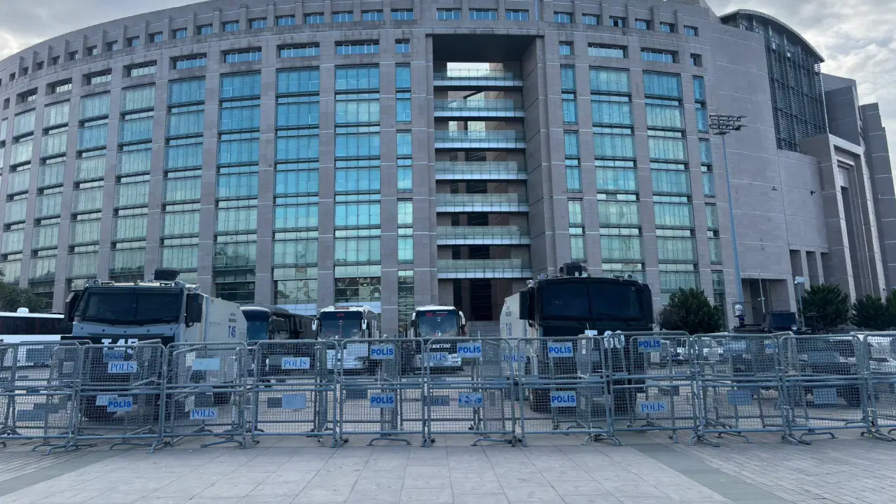 Adliye binasının çevresi binlerce polis, çok sayıda TOMA ve polis aracıyla çevrilmiş durumda. Barikatlar nedeniyle bırakın adliyeye girmeyi, yakınına bile yaklaşmak mümkün değil. İçeride, Ekrem İmamoğlu’nun ifadesine katılması beklenen üç avukat arkadaşımız bulunuyor. Ancak baro görevlileri dahi içeri alınmadığı için baro odaları açılamıyor.