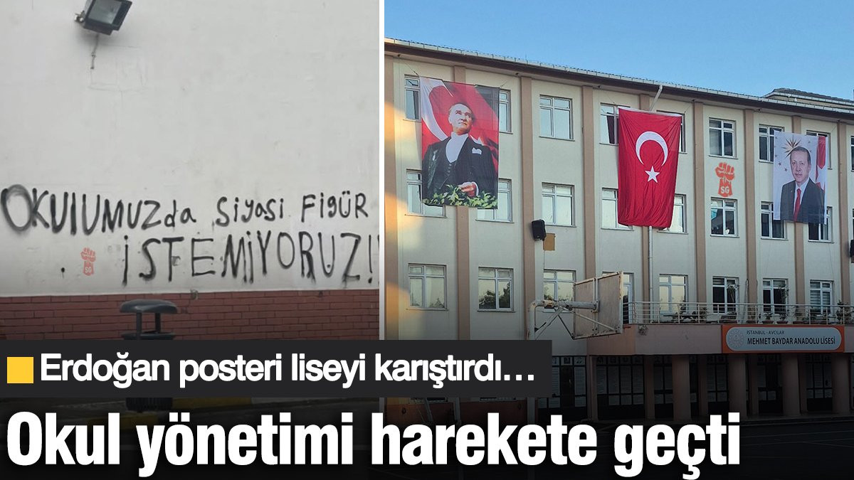 Posterin asılması sonrası liseli öğrencilerden ise tepki geldi. Avcılar Mehmet Baydar Anadolu Lisesi mezunları, Erdoğan’ın portresine tepki göstererek okul duvarına “Okulumuzda siyasi figür istemiyoruz!” yazısını yazdı.
