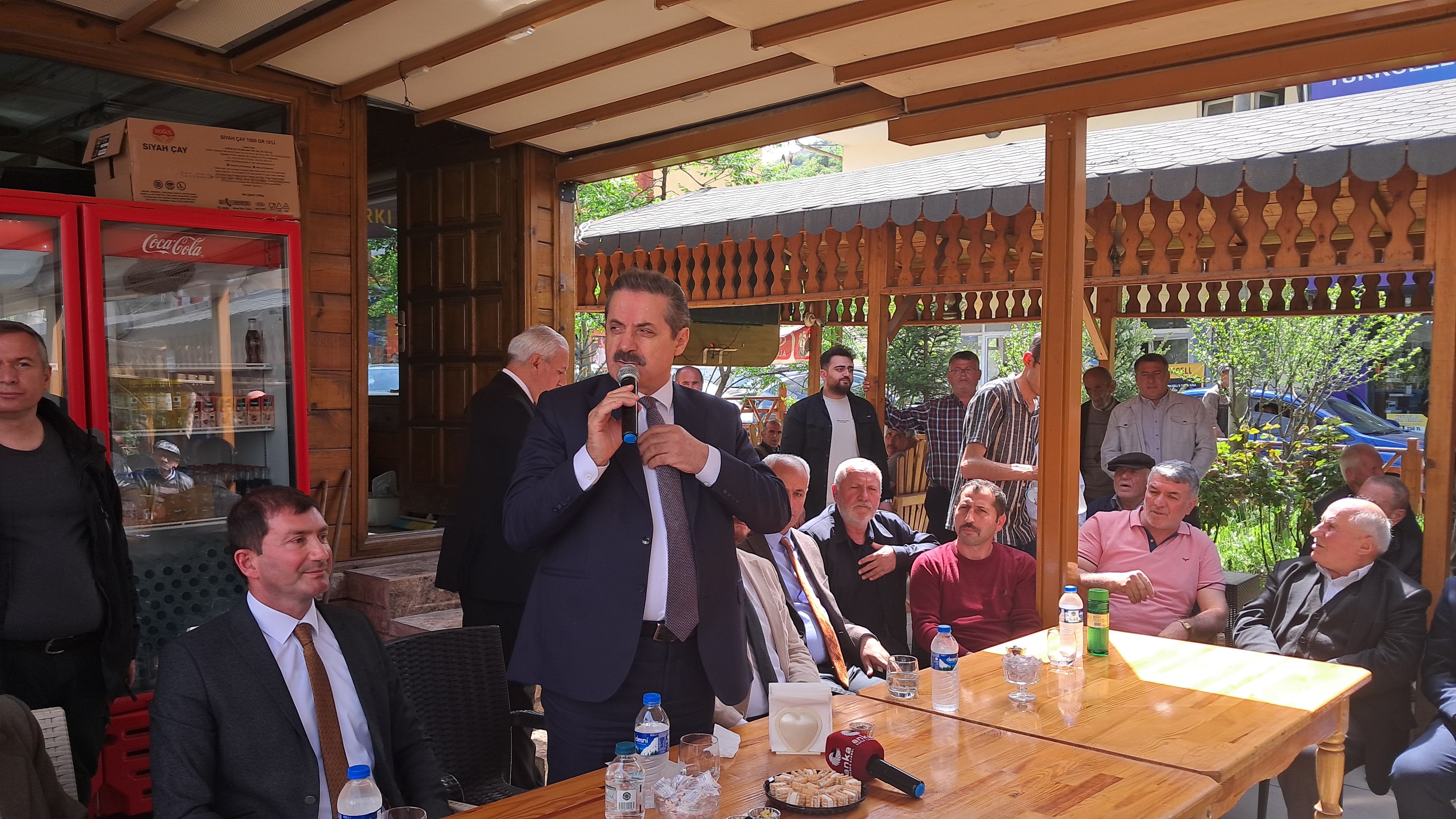 Halk buluşmasında söz alan esnaf Fevzi Karaman, “Sayın Bakanım, sizden şu an iki şey istiyorum; ben 1953 doğumluyum, 1954 yılında Dereyolu (Artvin-Ardanuç-Ardahan yolu) projesine başlanmış. Her gelen, bu yolun açılışını bana nasip etti ama hâlâ nasip olmadı. Artık yapılıp yapılmaması için peşine düşecek hâlim kalmadı. Ölenlere eskiden ‘Rabbin kimdir’ diye sorarlarmış. Şimdi de ‘Dereyolu yapıldı mı, yapılmadı mı’ diye soruyorlar.” ifadelerini kullandı.