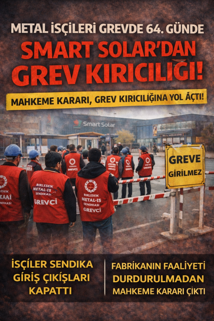 64 gündür grevde olan metal işçilerinin mücadelesi sürerken, Smart Solar’a ait güneş paneli fabrikasıyla ilgili çarpıcı bir gelişme ortaya çıktı. Grev devam ederken fabrikanın Kayseri’de fason üretim yaptırdığı bilgisi kamuoyuna yansıdı. Bu durum, işçiler ve sendika tarafından açıkça grev kırıcılığı olarak nitelendirildi.