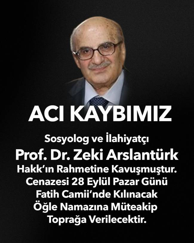 Türkiye’de son dönem sosyoloji ilminin önde gelen isimlerinden Sosyolog, İlahiyatçı Prof. Dr. Zeki Arslantürk İstanbul’da hayatını kaybetti.