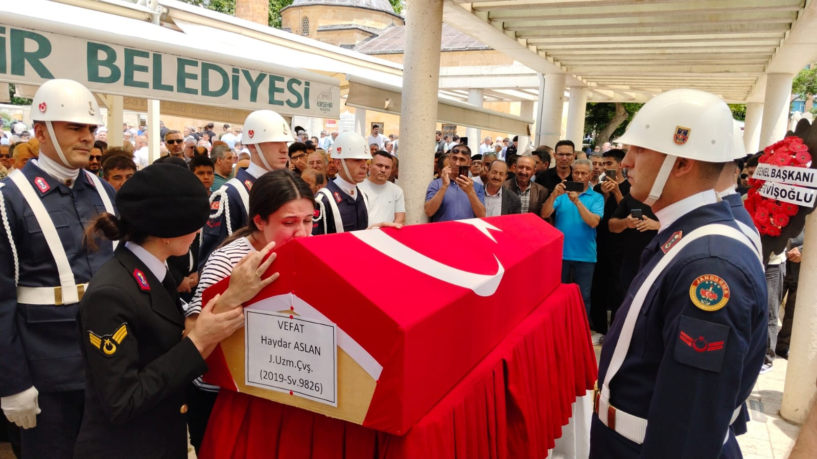 Haydar Aslan için Ahi Evran Camii’nde cenaze namazı kılındı. Cenazeye Vali Murat Sefa Demiryürek, Kırşehir Belediye Başkanı Selahattin Ekicioğlu, İl Jandarma Komutanı Albay Ahmet Yıldırım, Haydar Aslan’ın ailesi ve yakınları ile birlikte çok sayıda vatandaş katıldı. Cenazede Türk bayrağa sarılı tabuta sarılan Haydar Aslan’ın kız kardeşi Merve Aslan, “Bana nasıl yaptın bunu” diyerek gözyaşı döktü. Aslan’ın cenazesi burada kılınan cenaze namazının ardından Dulkadirli İnlimurat köyünde toprağa verildi. Eşi Ecemnur Aslan’ın cenazesi ise Ankara’da Yenimahalle ilçesindeki Karşıyaka mezarlığında son yolculuğuna uğurlandı.