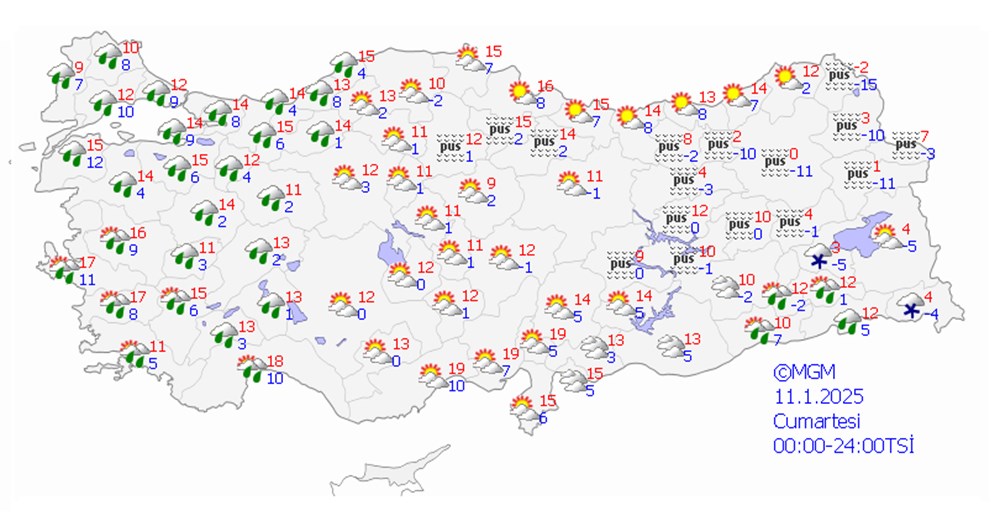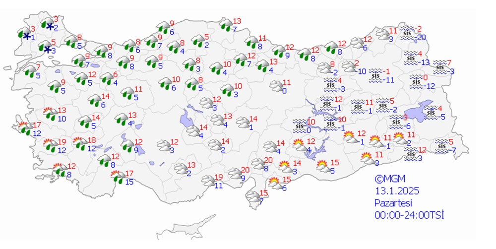 8 OCAK 2024 ÇARŞAMBA İL İL HAVA DURUMU