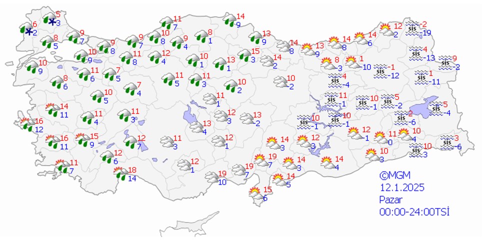 Edirne, Kırklareli, Çanakkale, İzmir ve Muğla çevreleri ile Aydın’ın kıyı kesimleri ve Balıkesir’in batı ilçelerinin yer yer sağanak yağışlı, diğer yerlerin az bulutlu ve açık geçeceği tahmin ediliyor.