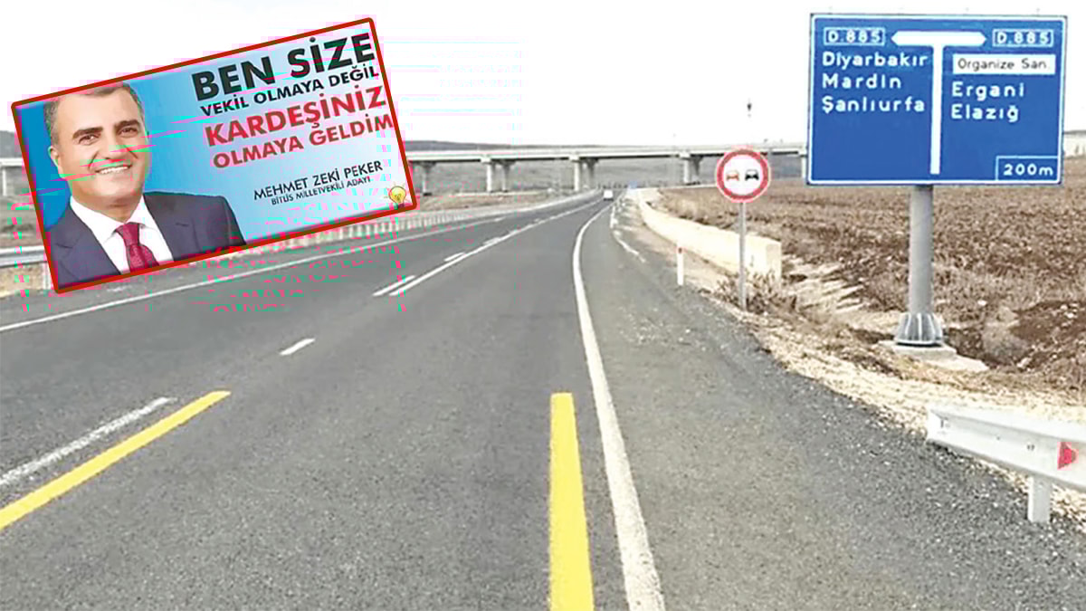 Sürekli ‘yol yaptık’ diyerek övünen AKP döneminde çoğu proje yılan hikayesine döndü. Bunlardan biri de Diyarbakır ayrımı Eğil Yolu. 2016’da 33 milyon 318 bin TL’ye ihale edilen yol, bir türlü bitmedi. 2023’te ikinci, 2025’te ise üçüncü ihale yapıldı. İhaleyi ‘Ben size vekil olmaya değil kardeşiniz olmaya geldim’ yazılı afişler astıran, 2015 ve 2018’de AKP’den Bitlis Milletvekili adayı olan ancak seçilemeyen Mehmet Zeki Peker’in şirketi aldı. Yolun maliyeti 9 yılda 46 katına çıktı.