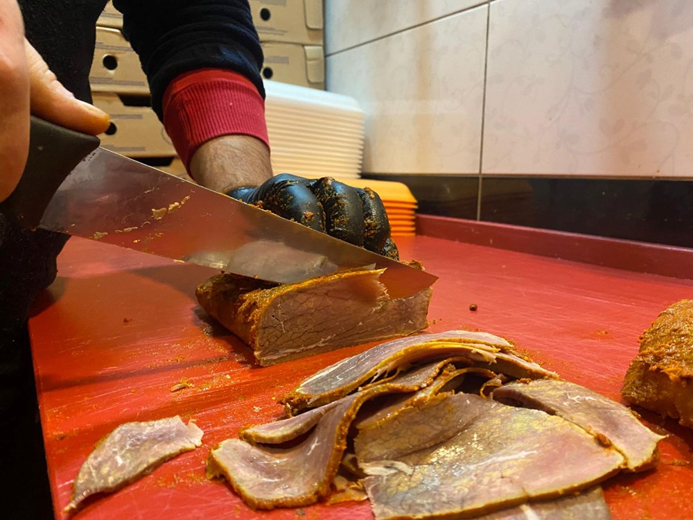 Yaptıkları pastırmanın yumuşaklığı ile dikkat çektiğini belirten Cihan Koç, “Çankırı’nın geleneksel yöntemleriyle pastırma yaptık. Çankırı’nın meşhur kaya tuzundan, içerisinde kimyasal maddeler olmadan doğal yöntemler kullandık. Renginin Kayseri ve Kastamonu pastırmalarına göre açık olmasının sebebi de içerisinde kimyasal maddelerin olmaması. Kendi aramızda tadımlık yaptık. Vatandaşlara da tattırdık, gayet güzel yorumlar aldık. Pastırmanın satış iznini almayı düşünüyoruz. Kayseri ve Kastamonu pastırmaları gibi kuru olmadı. İçerisinde kimyasal madde olmadığı için pamuk gibi bir pastırma oldu. Kayseri ve Kastamonu’ya taş çıkartan bir pastırma. Yapım aşaması yaklaşık bir ay sürdü. Önce eti temizleyip tuzladık, ardından eti suyu ile çemenledik ve kuruttuk. Ortaya temiz bir pastırma çıkarttık” diye konuştu.