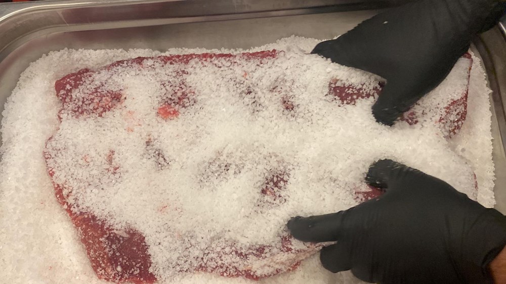 Çankırı’da bir kasap, doğal yöntemler ile kentin meşhur kaya tuzu ile ürettiği pastırma ile Kayseri ve Kastamonu’ya rakip oldu.