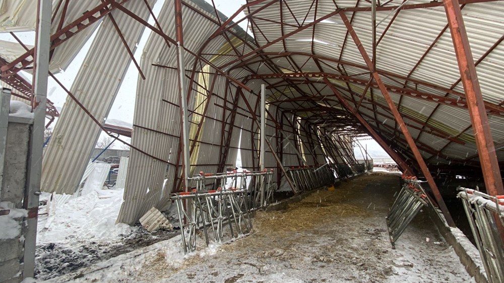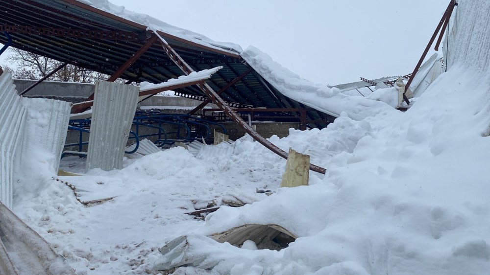 Kayseri’de bir ahırın çatısının kar nedeniyle çökmesi sonucu 17 büyükbaş hayvan telef oldu.