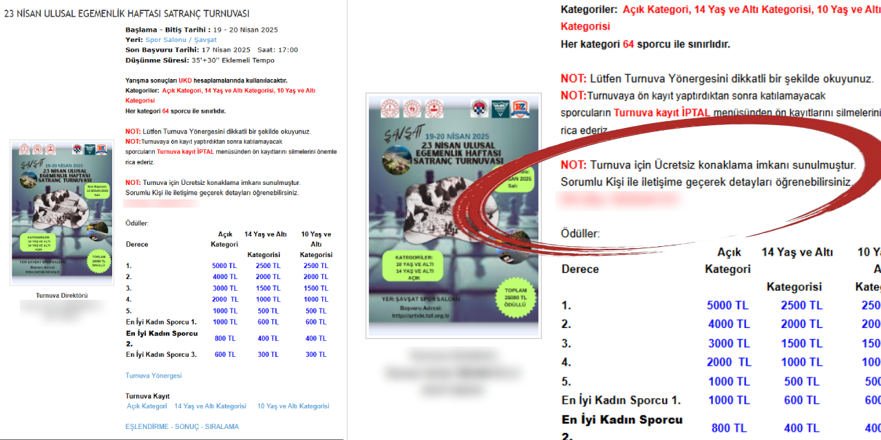 Kendilerine armağan edilen bayramda bir grup sporcu ve ailesine konaklama imkanı sağlanırken diğer çocuklar mağdur edildi. Turnuva tarihinden günler öncesinde duyurusu yapılan satranç turnuvasının resmi duyurusunda “Turnuva için ücretsiz konaklama imkânı sunulmuştur” ifadeleri yer alırken çocukları mağdur etmeyecek bir planlama yapılmaması dikkat çekti.
