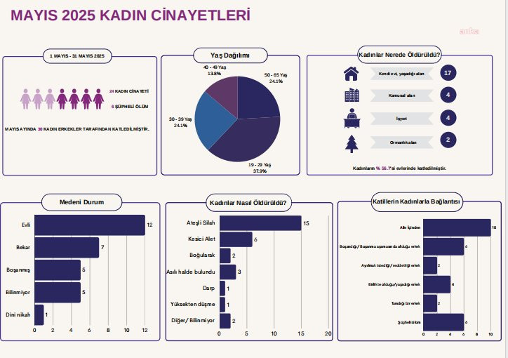 Federasyon, Mayıs 2025 Kadın Cinayetleri Raporu’nu yayımladı. Rapora göre, mayısta 30 kadın öldürüldü. Raporda öldürülen kadınların 12’sinin evli, 7’sinin bekar, 5’inin boşanmış, 1’inin dini nikahlı, 5’inin ise medeni durumunun öğrenilemediği belirtildi.