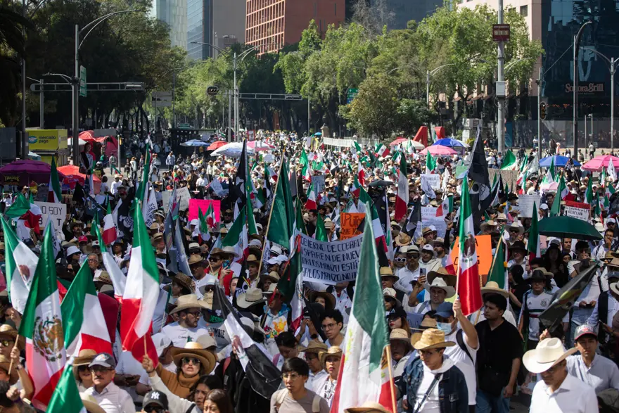 Meksika’nın başkenti Meksiko’da, hükümetin güvenlik politikasına karşı çıkan binlerce gösterici Bağımsızlık Anıtı’nda toplanarak Ulusal Saray’a yürüdü.