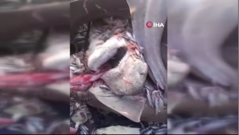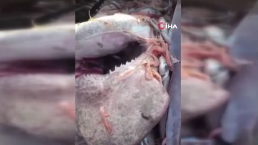 Mersin Silifke’den tekneyle Akdeniz’in 15 mil açığına giden balıkçılar, trol ağla avlanırken 8 künt burunlu altı solungaçlı boz camgöz köpekbalığı yakaladı. Şaşkına dönen balıkçılar, o anları cep telefonuyla kaydetti. Görüntüleri çeken bir balıkçı …