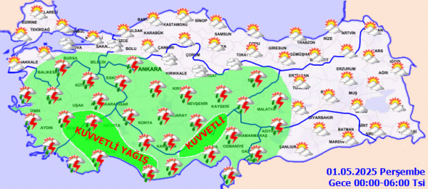 Parçalı ve çok bulutlu, gece saatlerinden yerel kuvvetli olmak üzere, aralıklı sağanak ve gök gürültülü sağanak yağışlı