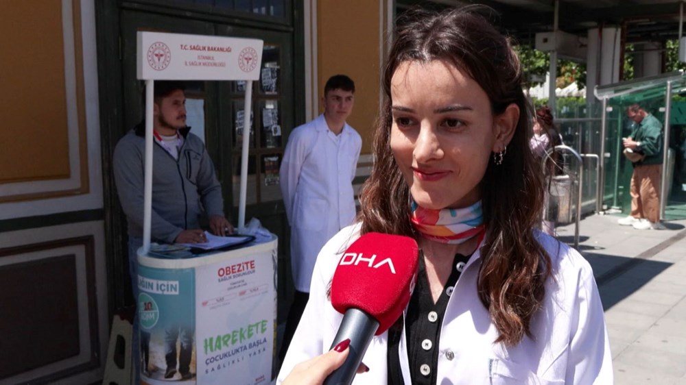 Diyetisyen Emel Özalp Şahin, “Sağlık Bakanımız Kemal Memişoğlu’nun başlattığı ‘İdeal Kilonu Öğren Sağlıklı Yaşa’ kampanyası kapsamında tüm Türkiye’de, 10 Mayıs-10 Temmuz tarihleri arasında 10 milyon kişinin boy ve kilo ölçümlerinin taranması hedeflenmektedir. Ülkemizde artan obezite prevalansına farkındalık oluşturmak amacıyla bu çalışmayı yürütüyoruz. İnsanlara boy ve kilo ölçümlerini gerçekleştirerek beden kitle indeksleri hakkında bilgi veriyoruz. Riskli grupta gördüğümüz kişilere sağlıklı hayat merkezlerine başvurmaları için bilgi veriyoruz. Bu kartlarda kişilerin boy, kilo ve beden kitle indeksleri yazılarak, buradaki kare kodu telefonlarına okutarak kendilerine uygun olan il ve ilçelerden ulaşabilecekleri sağlıklı hayat merkezleri, toplum sağlığı merkezlerinin adreslerine ulaşabilmektedirler. Oralardan gidip yardım alabilirler, bilgi alabilirler.