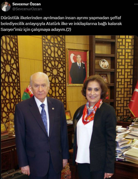 Beykoz İlçe Eğitim Müdürü Sevcenur Özcan’ın 2019 yerel seçimlerinde MHP Sarıyer Belediye Başkan Aday Adayı olduğu ortaya çıktı.