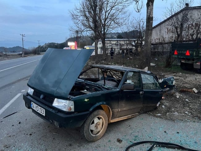 Bolu’nın Mudurnu ilçesinde karşı yönden gelen araçla çarpışan otomobil çarpmanın etkisiyle ikiye bölündü. Parçalanan otomobilin sürücü mucize eseri kazadan yara almasan kurtuldu. Fabrikanın duvarına çarpan diğer otomobilin sürücüsü yaralandı.