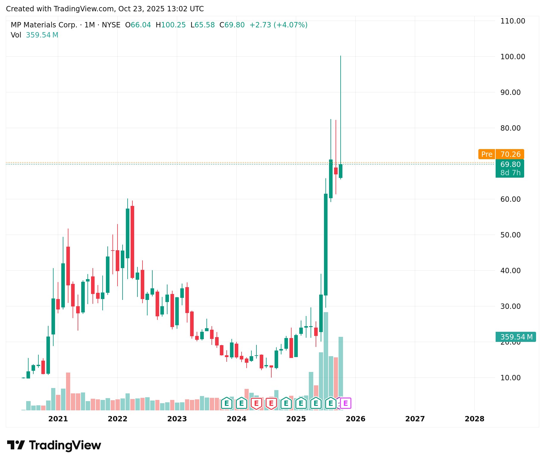 MP Materials hisselerinde büyük yükseliş (1 aylık grafik)