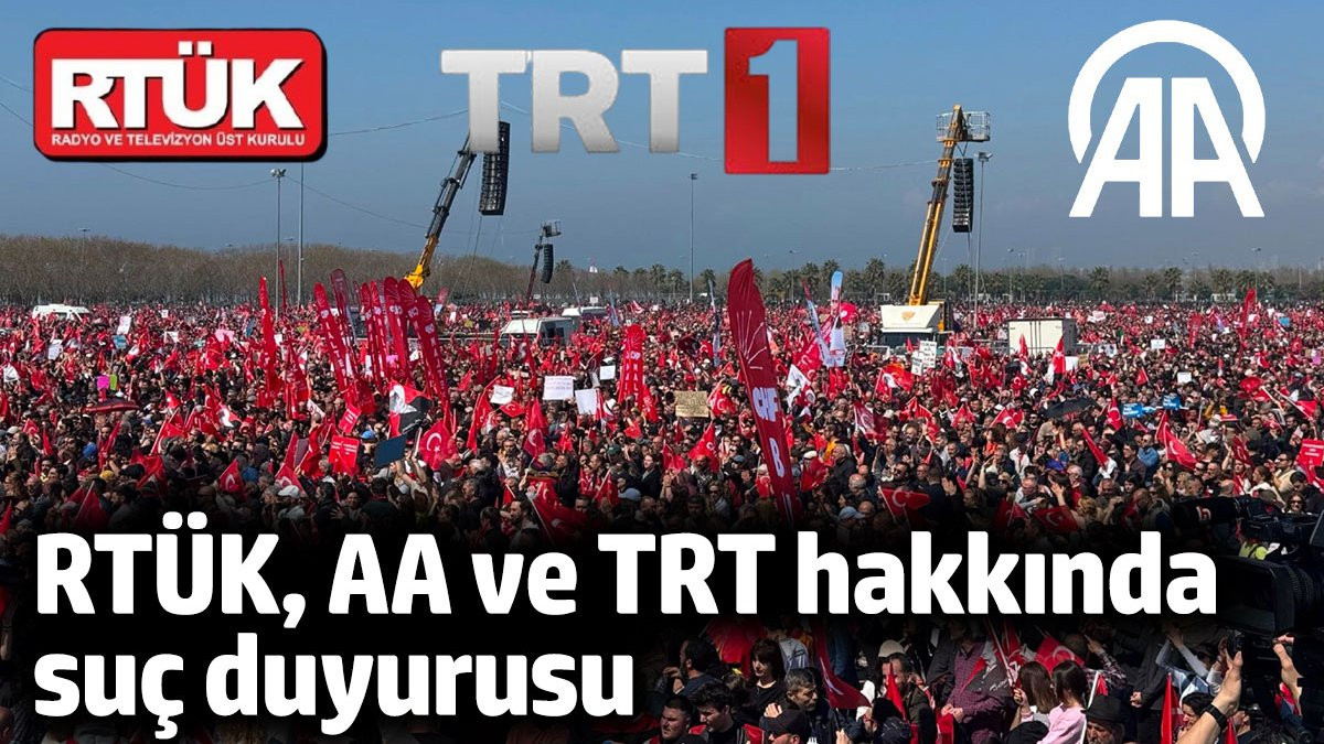 Eminağaoğlu, 2 milyondan fazla yurttaşın katıldığı mitingi yayınlamayan Anadolu Ajansı, TRT ile RTÜK görevlilerinin “Görevi kötüye kullanma” suçunu işlediğin belirtti.