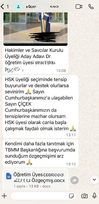 Akademisyen, eski Bakan Çiçek’in telefonu zannettiği numaraya HSK üyeliği için kendisine torpil yapılmasını istediği mesajlar attı.