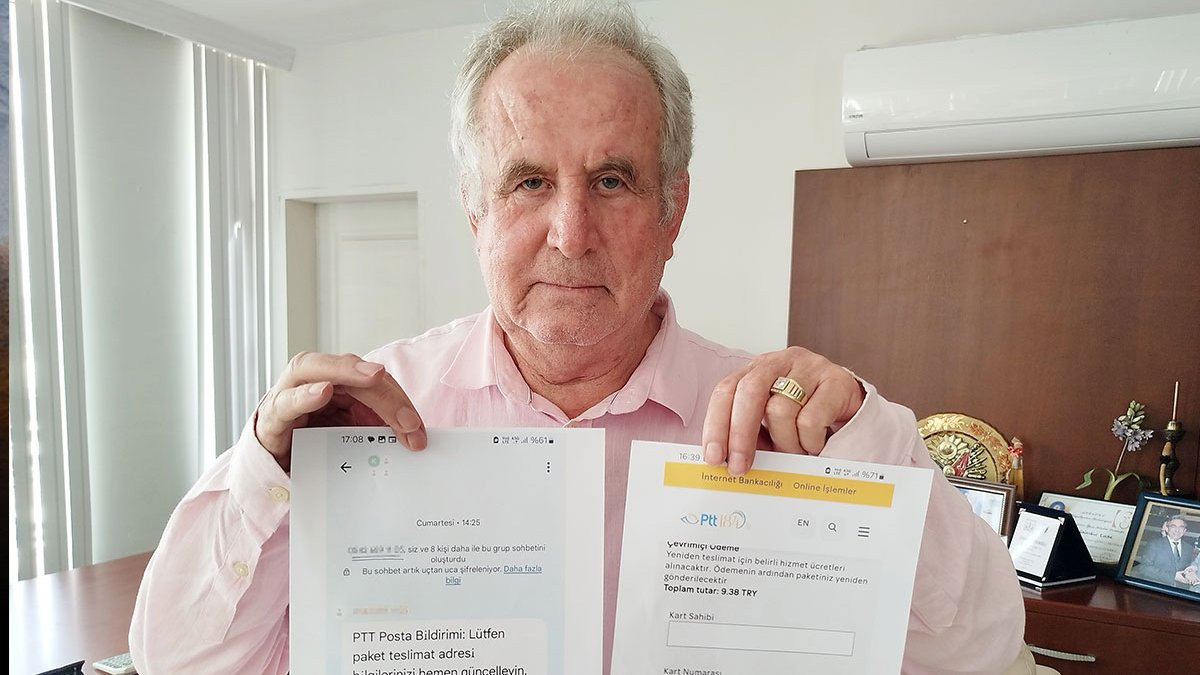 Kentte emlak şirketi sahibi Talip Yörükoğlu’nun cep telefonuna 17 Mayıs’ta, ‘PTT’nin adı kullanılarak kısa mesaj geldi. ‘PTT Posta Bildirimi’ başlığıyla gönderilen mesajda, “Lütfen paket teslimat bilgilerinizi hemen güncelleyin. Kurye ürünü birkaç kez teslim etmeye çalıştı ancak başaramadı. Şu anda fabrika deposunda muhafaza ediyoruz. Bilgileri güncellemek için bağlantıya tıklayın” ifadeleri yer aldı.