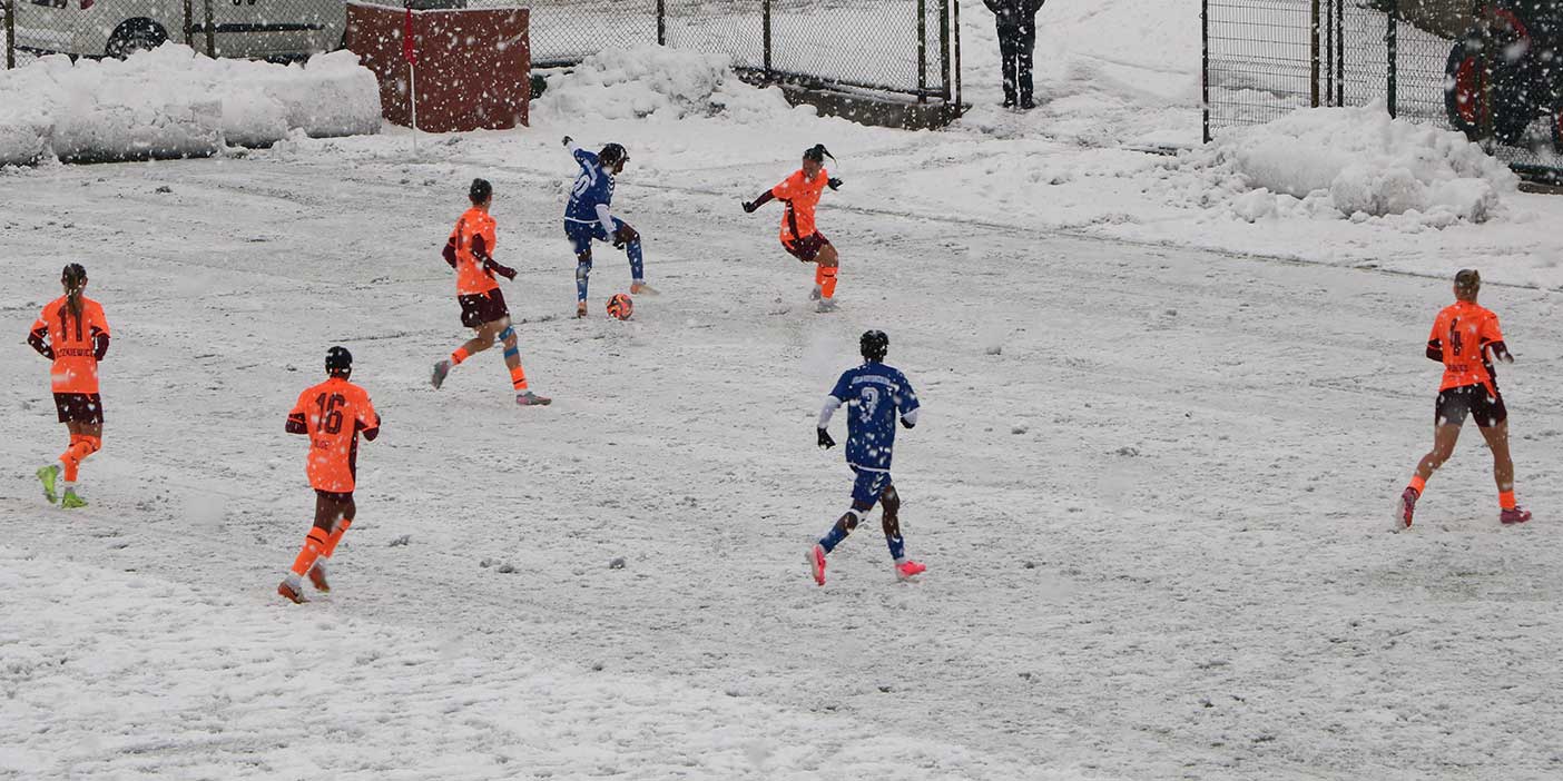Merzan Şehir Stadı’nda zaman zaman etkili olan kar yağışı altında oynanan karşılaşmanın ilk yarısını konuk ekip, 34. dakikada Chioma Olise ve 45. dakikada Donjeta Halilaj’ın attığı gollerle 2-0 üstün tamamladı.