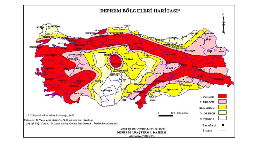 Acil ve Acil Durum Yönetimi Başkanlığı tarafından deprem bölgeleri haritası hazırlandı.