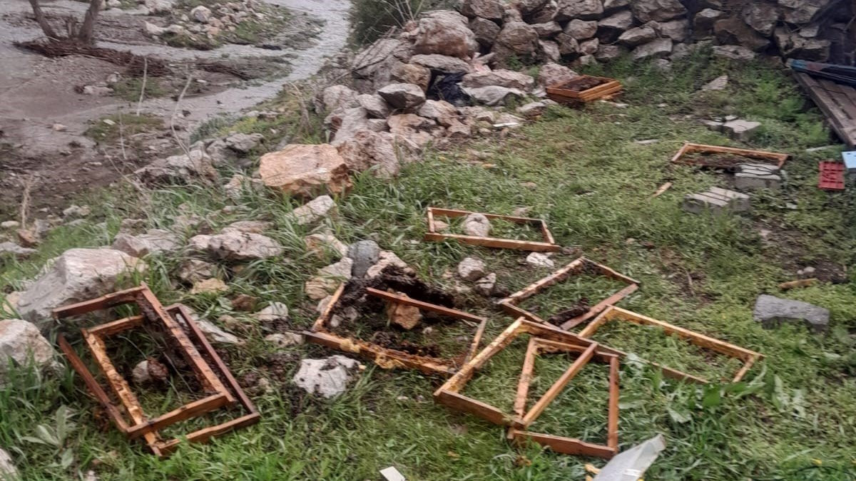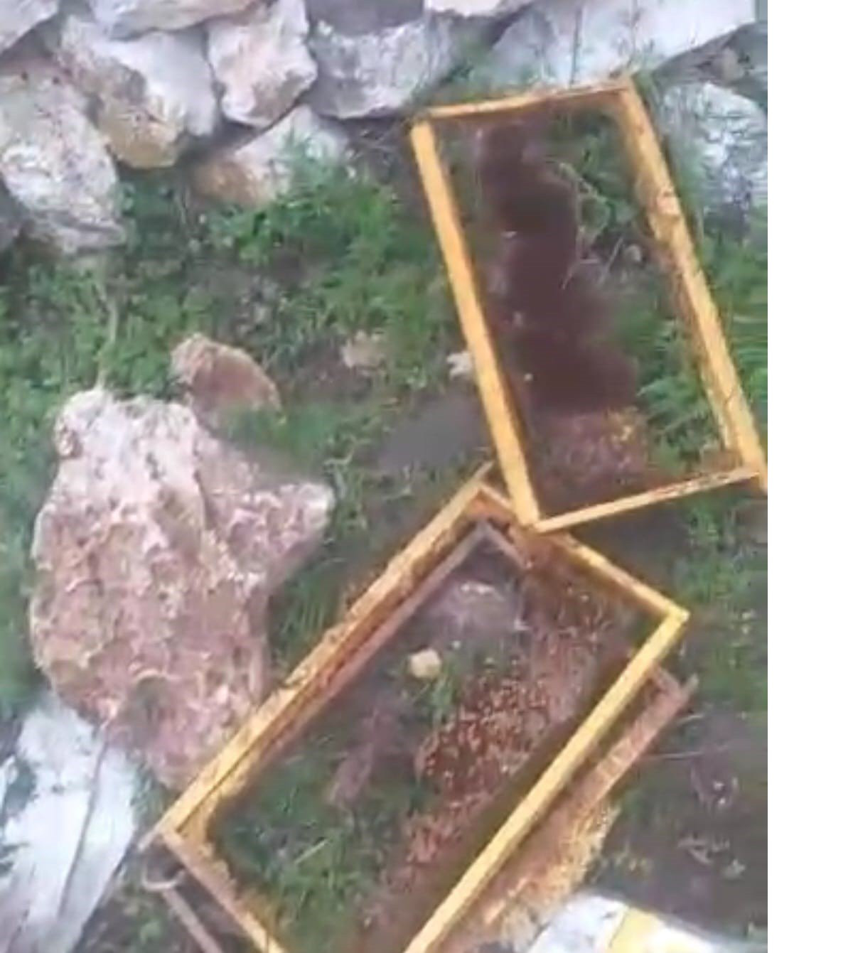 Yaylada bulunan kovanların içindeki petek bal ve arıların ayı saldırısı sonucu tamamen yok olduğu görüldü.