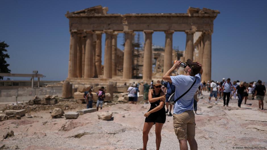 Sıcaklıklar turistlerin planlarını da etkiliyor. Başkent Atina’nın simgelerinden antik şehir Akropolis’i ziyaret etmek isteyenler, bu tarihi yapının öğle saatlerinde kapılarını kapatma ihtimaline hazırlıklı olmak zorunda. Aşırı sıcaklıkların hem ziyaretçiler hem de bu bölgedeki görevliler için güneş çarpması ve dolaşım problemleri riski oluşturduğu uyarısı yapılıyor.