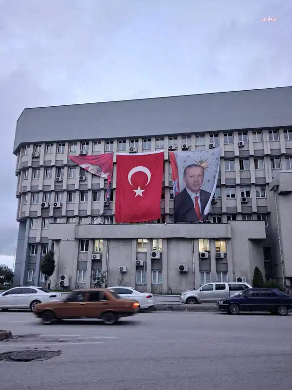 Ancak Valilik önünde saat 13.00’te başlayacak resmî tören için hazırlık yapıldığı sırada Atatürk posterlerinin asılı olduğu yerde toplanarak, binadaki klima dış ünitesinin arkasına sıkıştırıldığı dikkati çekti.